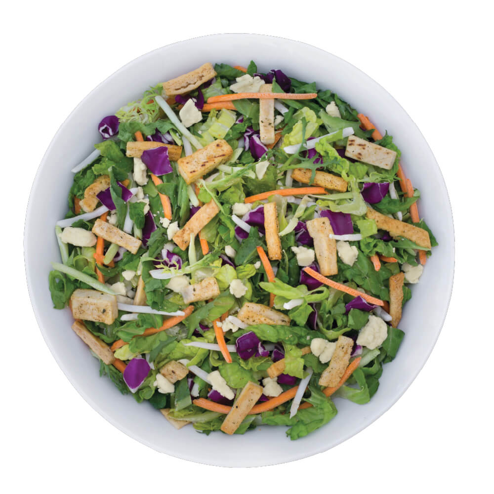 Romaine lettuce, broccoli, carrots, herb seasoned flat bread strips, feta cheese, red cabbage, cauliflower, chicory topped with basil balsamic vinaigrette invoke all the flavors of the Mediterranean.